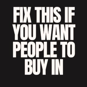 Fix this if you want people to buy in (the one question you can’t answer…)